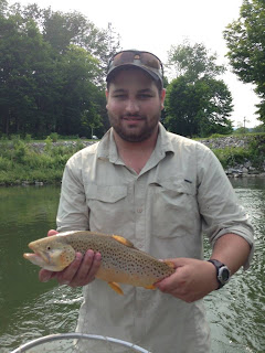 Over the past month or so, I've fished about as often as I've updated this blog - which you can tell is not that often. I hate to say I told you so, but I told you so. We were complaining about high flows early in the season, and now look at us - eating crow and not catching now fish - unless you're hitting a tailwater. If it wasn't for today's massive rainfall, we were heading for single digit CFS water flow on the Q. Its currently up to 50 CFS but will not be there for long. My guess is we'll be back to 10-20 by the weekend. I'm not sure if today's downpour will stimulate the bugs or fish at all, but its worth a try, I may be out there this evening. I'm sure you all know the past few weeks have been dreadful on the Q and other Massachusetts freestones. I did hit the Millers and Quinnie earlier this month and the best of the day were the two rainbows pictured. The hefty bow below was from the Millers and was a lot lighter in color than normal Millers River Trout. Typically, after being in that water for a month or so, the rainbows develop a blackish color, and the pink becomes more of a dark red. The browns get a bit darker as well, and the typical "butter belly" becomes more of a silver or light black/brown. So I was surprised to catch a fish that looked like it belonged in the Swift! Maybe its a sign of better water quality?! I wont hold my breath...